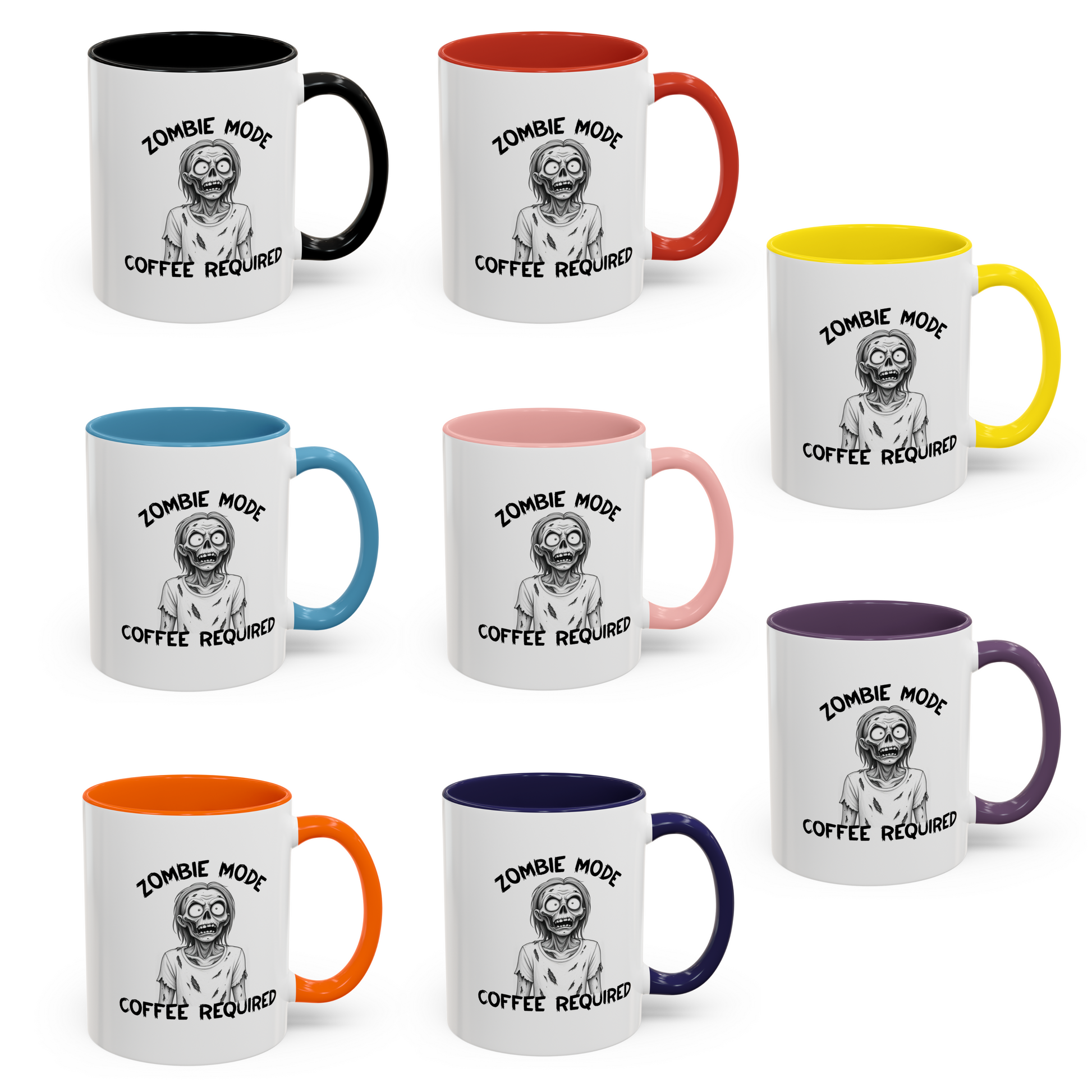 Get ready to shuffle into your morning with this funny Halloween zombie coffee mug, featuring the cheeky phrase "Zombie Mode Coffee Required" and a custom black and white sketch style cartoon zombie with oversized big eyes and a hilariously shocked expression – perfect for adding some undead charm to your daily brew! This spooky Halloween mug is ideal for horror fans, witchy women, ghoul friends, or anyone obsessed with pumpkin spice lattes and monster vibes, making it a top Halloween gift idea or eerie addition to your fall autumn kitchen essentials and Halloween decor collection.